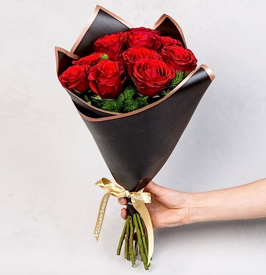 siyah selefonda 11 adet kırmızı gül ile sevdiklerinizi mutlu edin