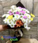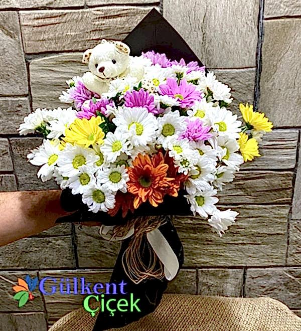 RENKLİ PAPATYALAR VE AYICIKLI ÇİÇEK BUKETİ