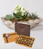 kayık saksı da 2 adet kalanşo ve çikolata kutusu