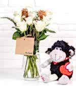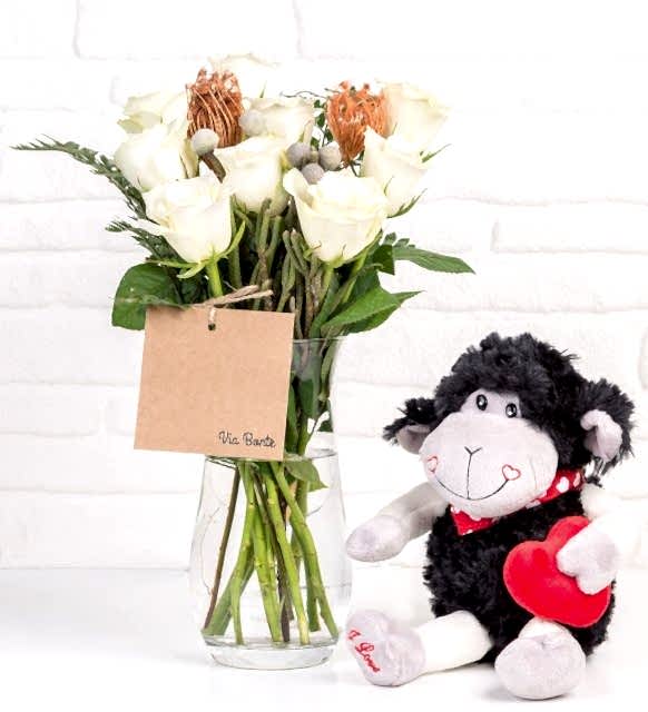 Özel Tasarım Vazoda Beyaz Güller ve Kuzu
